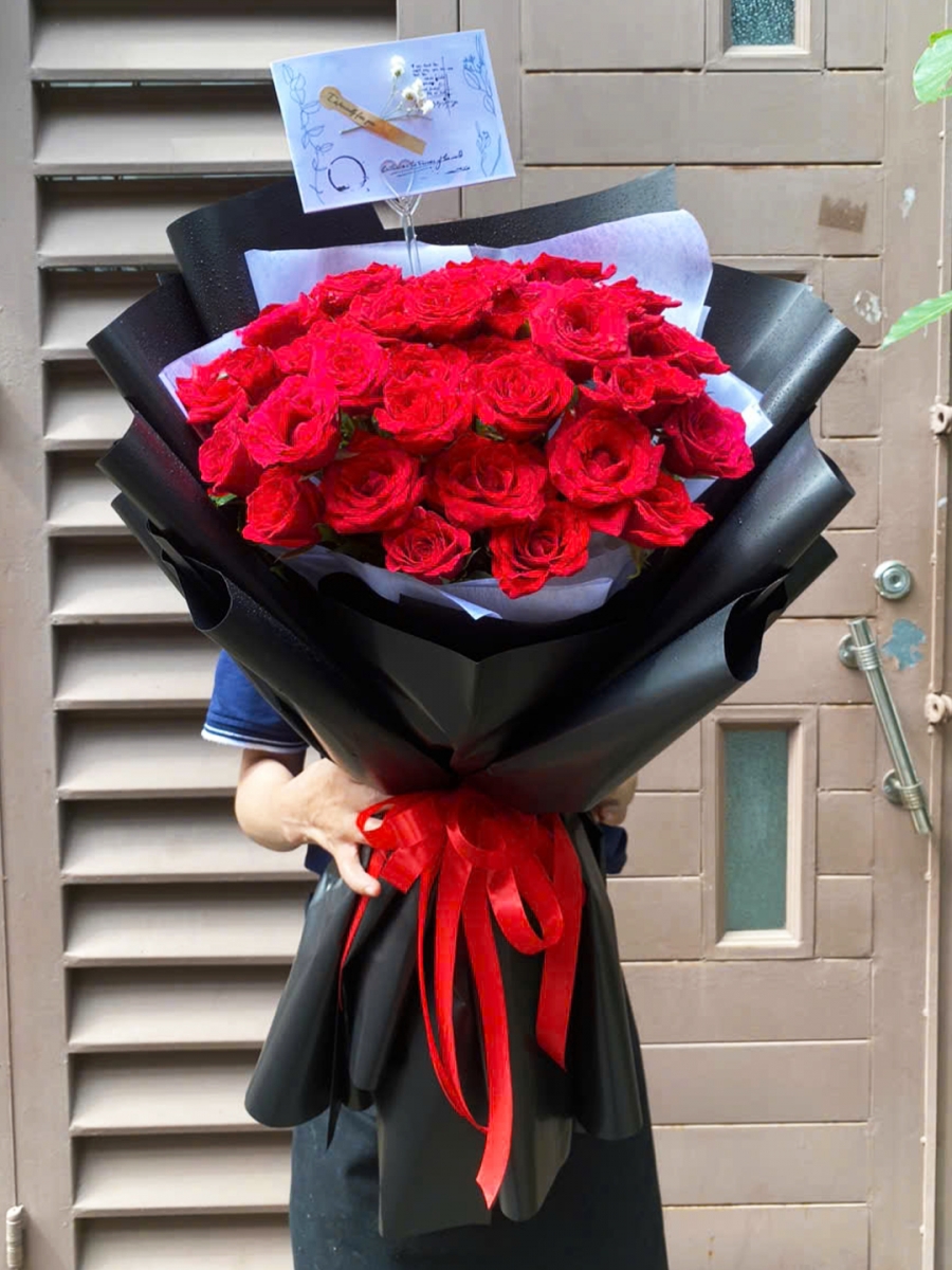Loài hoa được chúng tôi vinh danh và lựa chọn để làm hoa chủ đạo trong thiết kế của sản phẩm Bó Hồng Hiện Đại đó chính là hoa Hồng đỏ. Mang thiết kế quyến rũ và đồng bộ giấy gói và nơ cũng có sắc đen thể hiện được sự hài hòa trong thiết kế, mang đến vẻ sang trọng, lịch thiệp cho bó hoa.