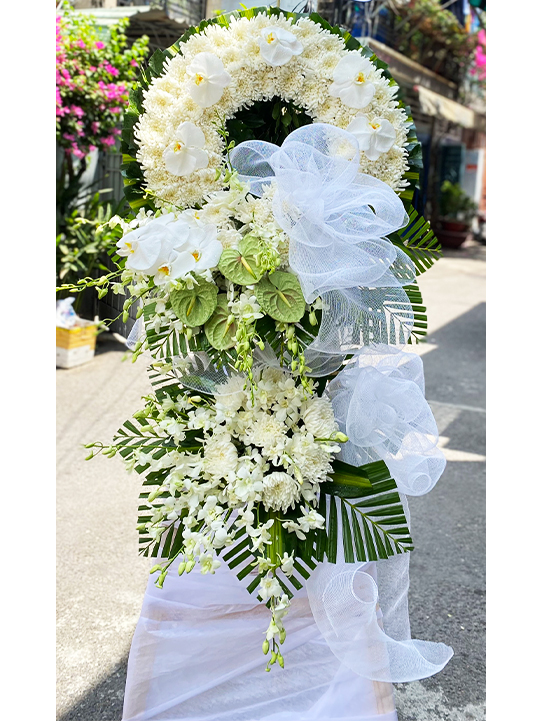 Nếu bạn muốn gửi một lẵng hoa tang đơn giản, không quá cầu kỳ nhưng phải đẹp mắt, trang nhã và vẫn thể hiện được lời chia buồn sâu sắc thì kệ hoa Hoa Phúng Điếu Sang Trọng chính là sự lựa chọn tốt nhất.