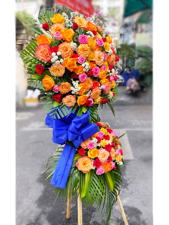 Những bông hoa đồng tiền sở hữu một vẻ đẹp tươi tắn, căng mọng và tràn đầy nhựa sống. Kệ Hoa Chúc Mừng Khởi Công Đẹp là sự kết hợp của nhiều bông Đồng Tiền màu sắc khác nhau, được xếp thành kệ hai tầng có ý nghĩa sắp có một bước tiến lớn tốt đẹp, cách xếp đều hàng, lan tỏa nhiều phương có ý nghĩa tài lộc muôn nơi sẽ tới, nhanh chóng có được tiền tài, giàu sang phú quý.