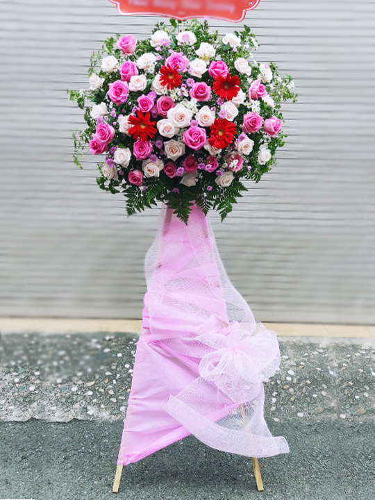 Một lẵng hoa chúc mừng hồng phát sẽ giúp bạn gửi gắm đến người nhận những lời chúc cho việc làm ăn phát đạt, mọi điều may mắn đến với công việc cũng như cuộc sống.