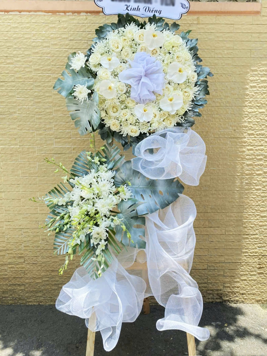 Lẵng Hoa Đám Tang mang thiết kế rất công phu và tỉ mỉ thể hiện được sự trang trọng, cao cấp là một trong những sản phẩm bán chạy nhất trong thời gian vừa qua của Điện hoa Sài Gòn.