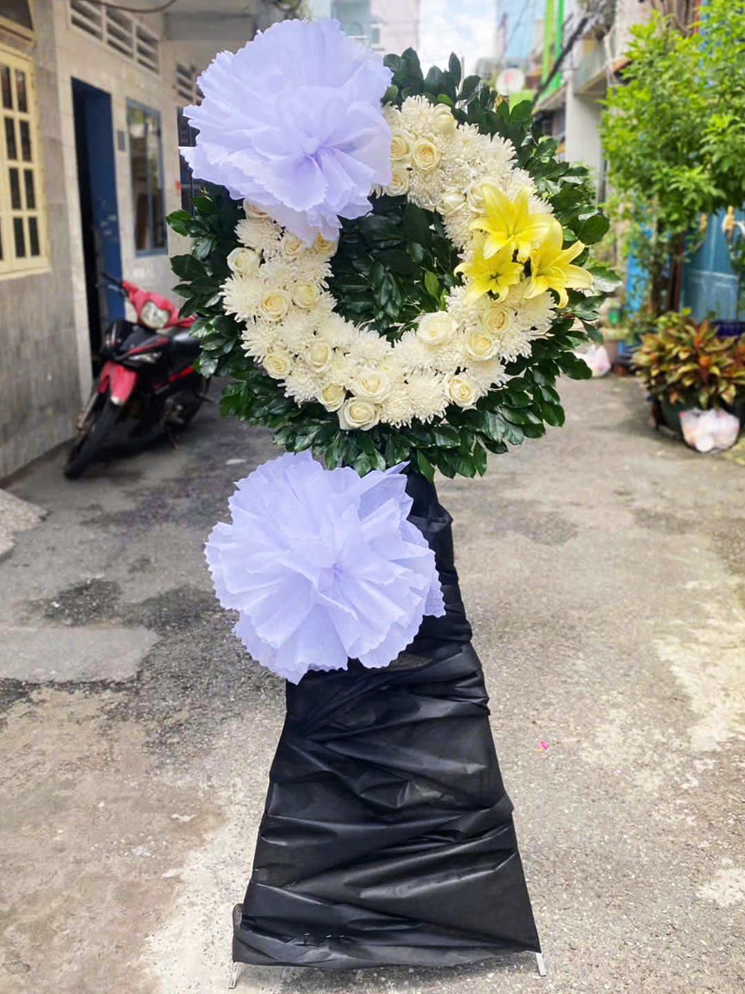 Những bông hoa được Hoa tang lễ Bình Dương sắp xếp gọn gàng thành 1 vòng hoặc 1 lẵng để tiết kiệm không gian tang lễ hơn, giúp người qua lại có thể dễ dàng thăm viếng.
